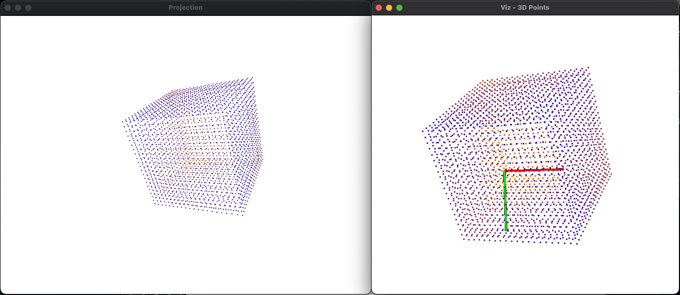 這個程式會生成兩個畫面,一個是 2D 的投射圖片,一個是 3D 的點雲模型。